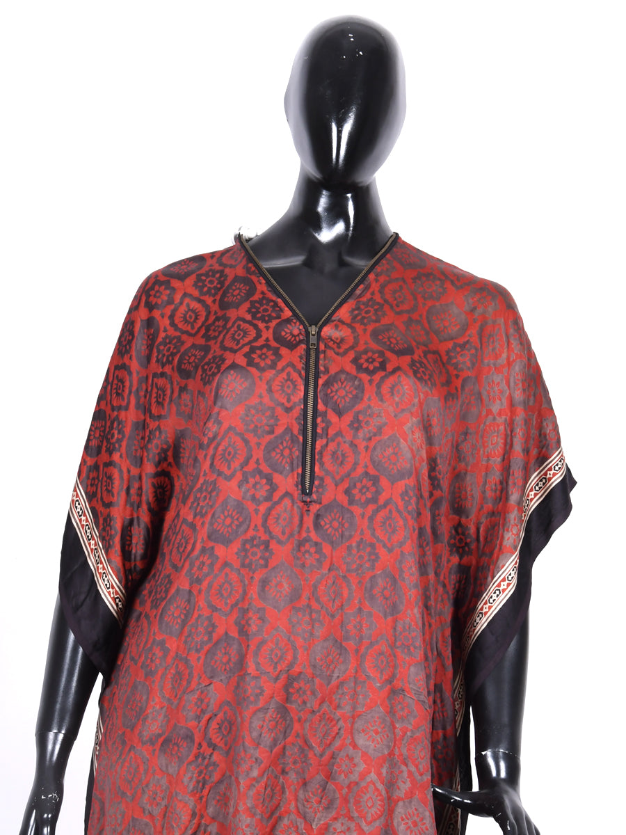 A beautiful modal fabric kaftan with v-neck With chain and ajrakh printing. It is soothing for your daily requirements for the office and is a good match with your waist belt or with a black palazzo.