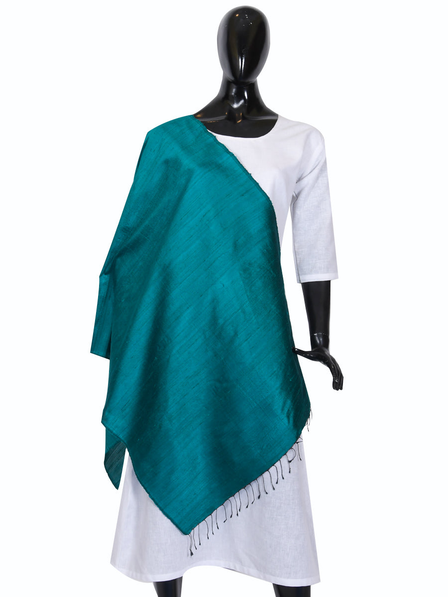 Banarasi Raw Silk Stole Handwoven Stoles Medium Turquoise - ahmedabadtrunk.in